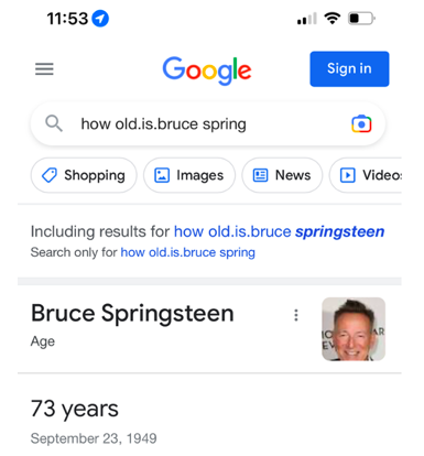 1) We’d have to check Google Analytics, but we estimate 17,954 people searched “How old is Bruce Springsteen?” last night.