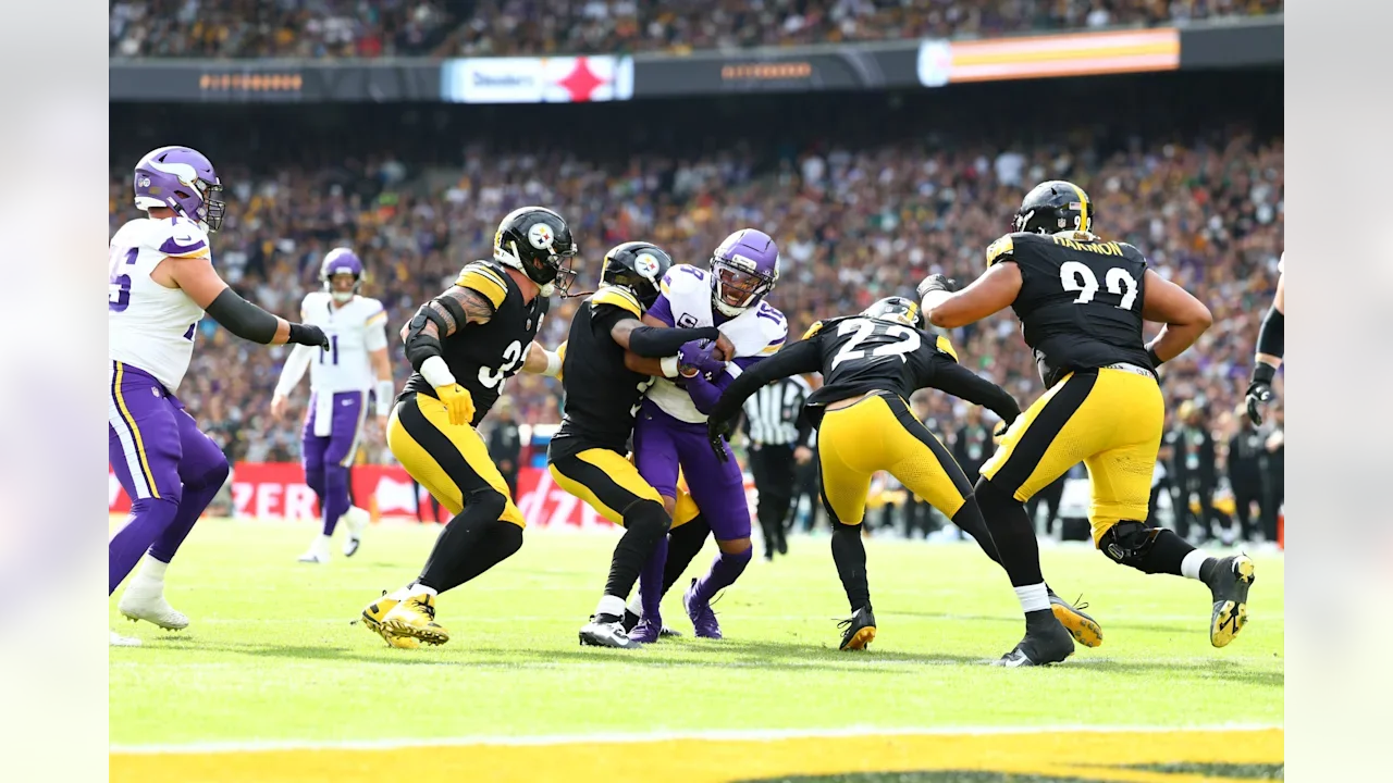 Down three offensive linemen, Carson Wentz was under siege all day as the Steelers beat the Vikings 24-21 in Dublin in a game that wasn’t nearly as close as the final score indicated. Minnesota, now 2-2, plays Cleveland next week in London. Wentz was sacked six times and threw two interceptions, finally getting untracked way too late.